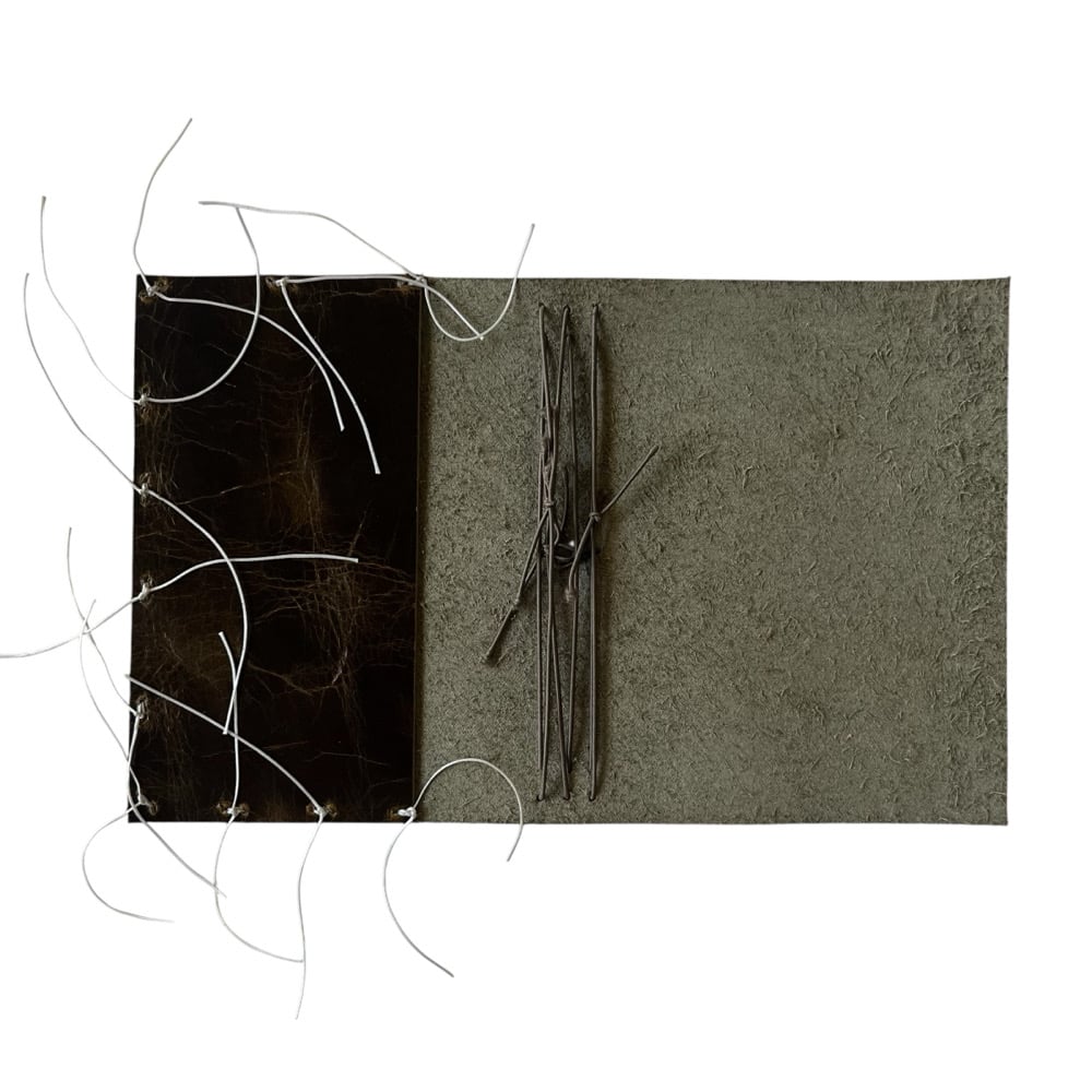 Maverick’s Sample Pocket Journal is made from an olive green chrome-tanned leather. It has an interior slip pocket that is secured with white untrimmed thread. Each journal comes with a grey double elastic pull around closure and 1 notebook refill (3.5x5.5). The pocket journal can hold 3 notebook refills comfortably (or up to 6 refills). Imperfections may differ from each journal.
