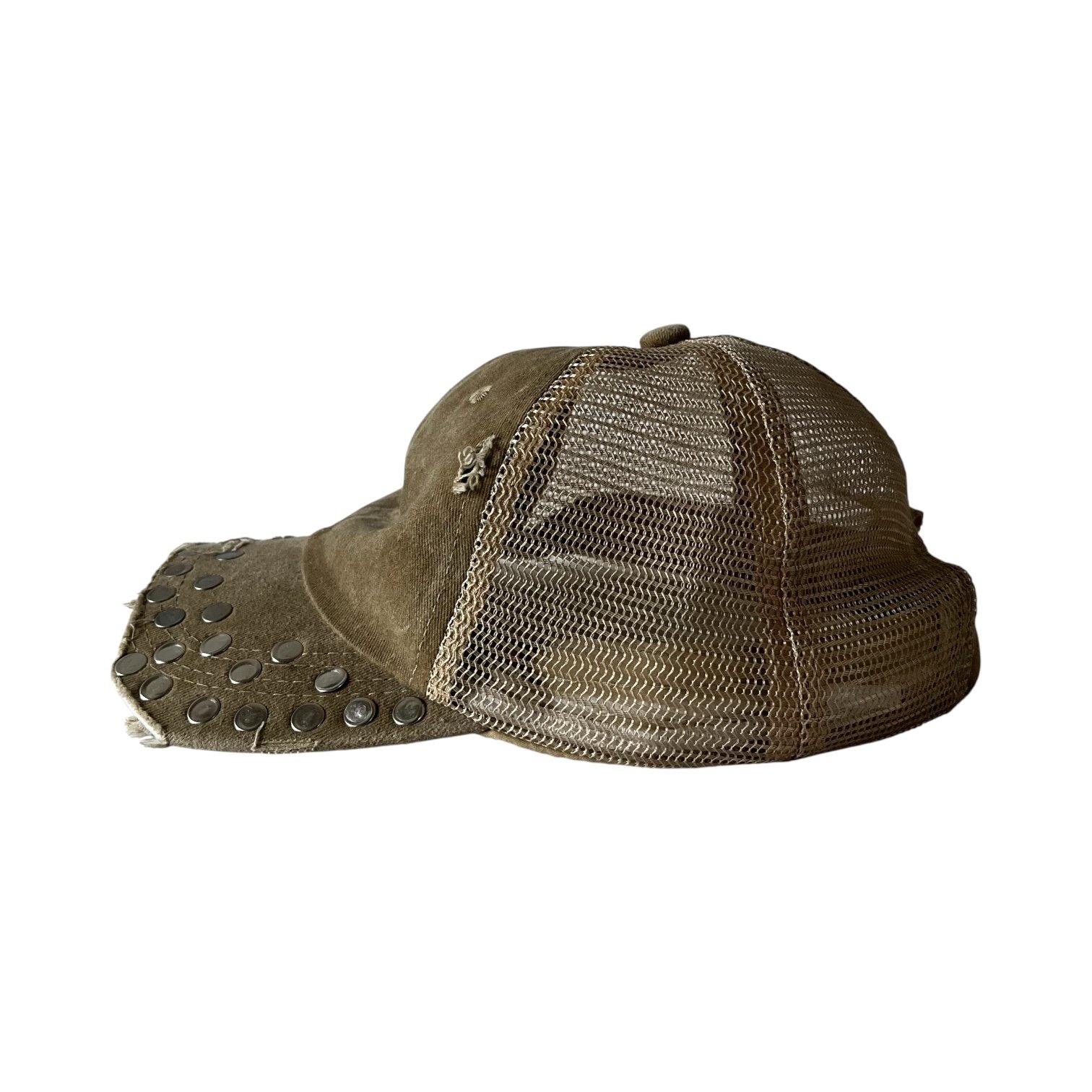 Maverick's Trucker Hat is made of a khaki 100% cotton fabric and a mesh panel back.