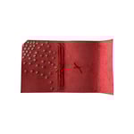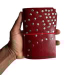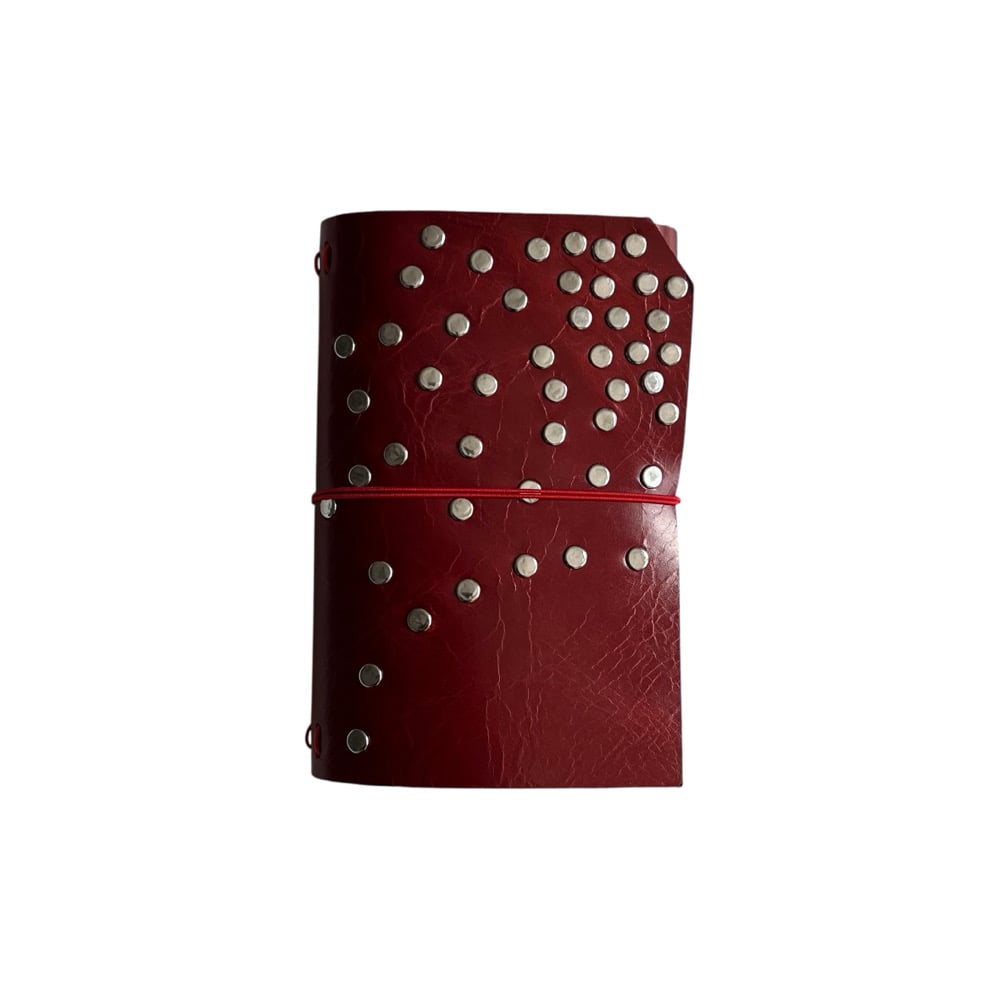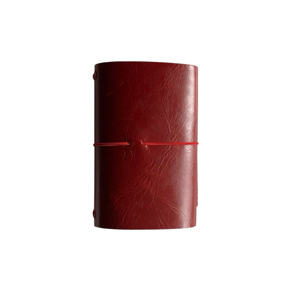 Pocket Journal is made from a red chrome-tanned leather with a pull up effect and finished with double cap rivets. Each journal comes with a red double elastic pull around closure and 1 notebook refill (3.5x5.5). The pocket journal can hold 2 notebook refills comfortably (or up to 4 refills). Cracking, distressing, & imperfections may differ from each journal.